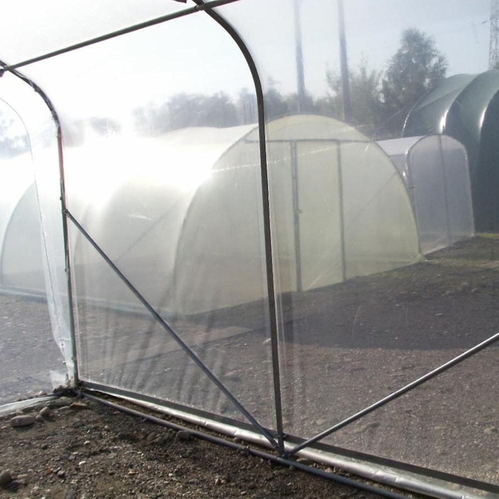Pour une bonne fixation au sol il est impératif d'enterrer la bâche sur la longueur de la serre.
